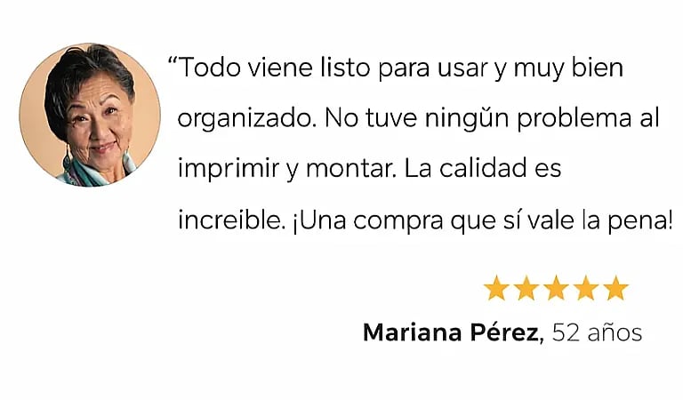 Los moldes ya vienen listos, organizados y estructurados para que no tengas que crear nada desde cero. Solo necesitas imprimir, seguir el contorno y comenzar a cortar.
